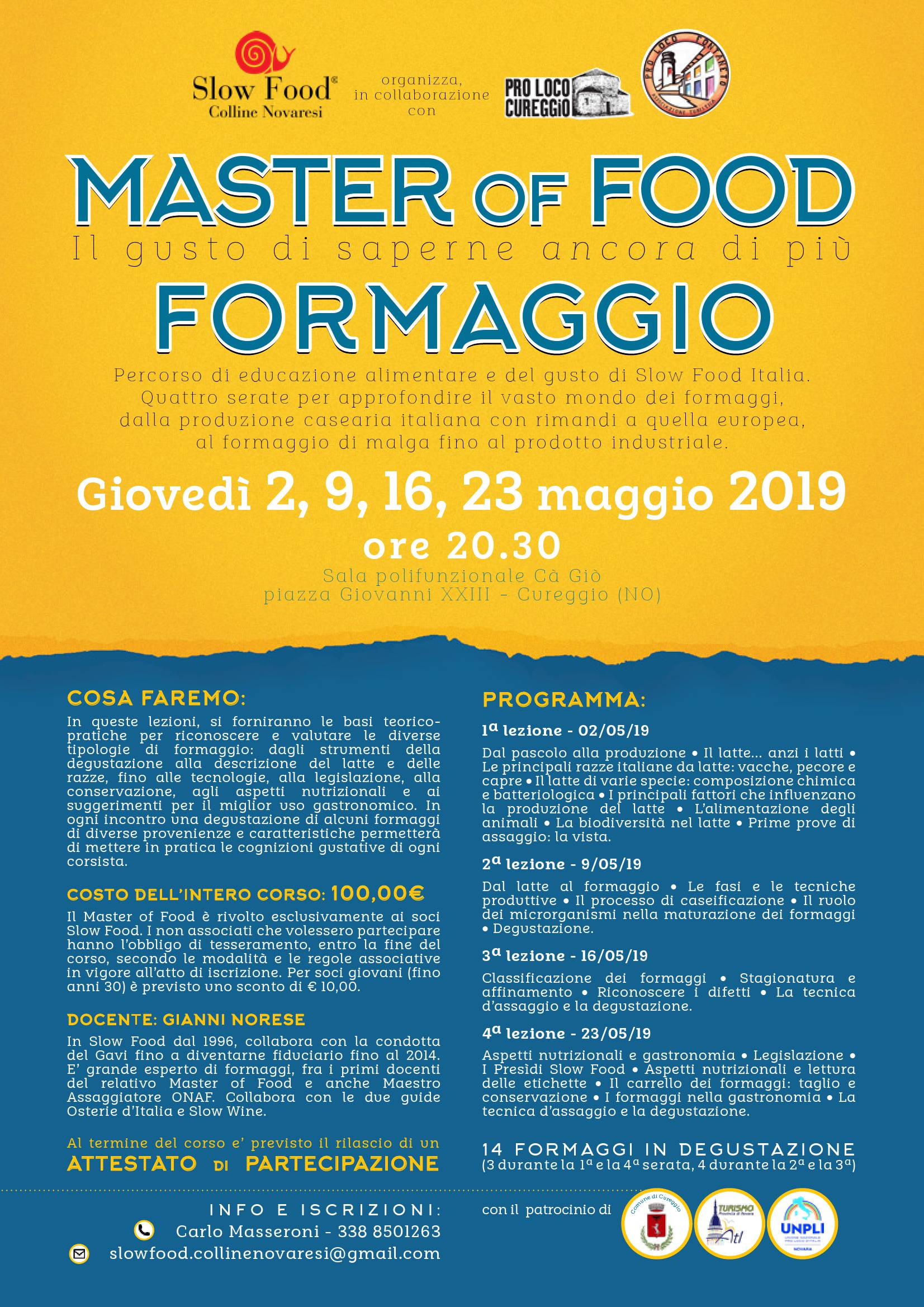 Dopo il corso sulla birra del 2018, quest’anno la Condotta Slow Food delle Colline Novaresi, infatti, in collaborazione con la Pro Loco di Cureggio e quella di Fontaneto, organizza il “Master of Food” sul formaggio. Quattro serate per approfondire il vasto mondo dei formaggi, dalla produzione casearia italiana con rimandi a quella europea, al formaggio di malga fino al prodotto industriale.