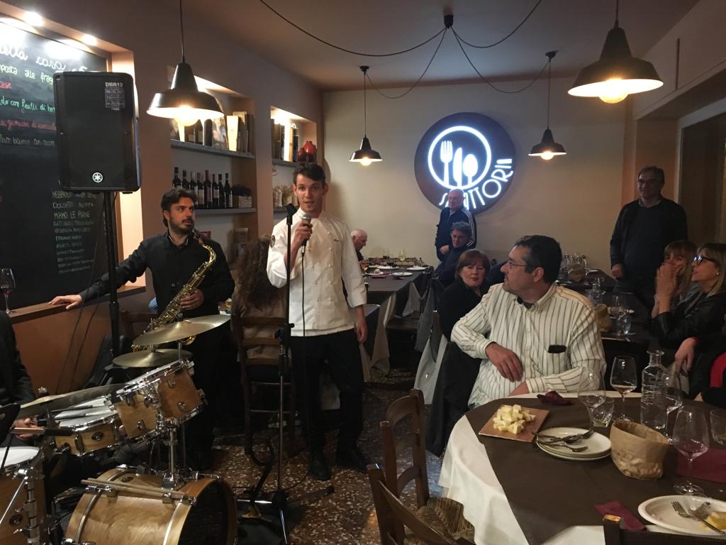 Strattoria e il suo giovane cuoco Alessio Rossi hanno festeggiato infatti l’ingresso nel grande progetto internazionale dell’Alleanza dei Cuochi di Slow Food, con una serata in collaborazione con la nostra Condotta Slow Food dal titolo “StrAperitivo Slow e Swing”: il programma prevedeva dalle 19.00 un aperitivo non stop con una selezione di prodotti dell’Alto Piemonte, sfiziosi stuzzichini e uno dei piatti più caratteristici del locale, il risotto al Macagn con pepe selvatico del Madagascar.