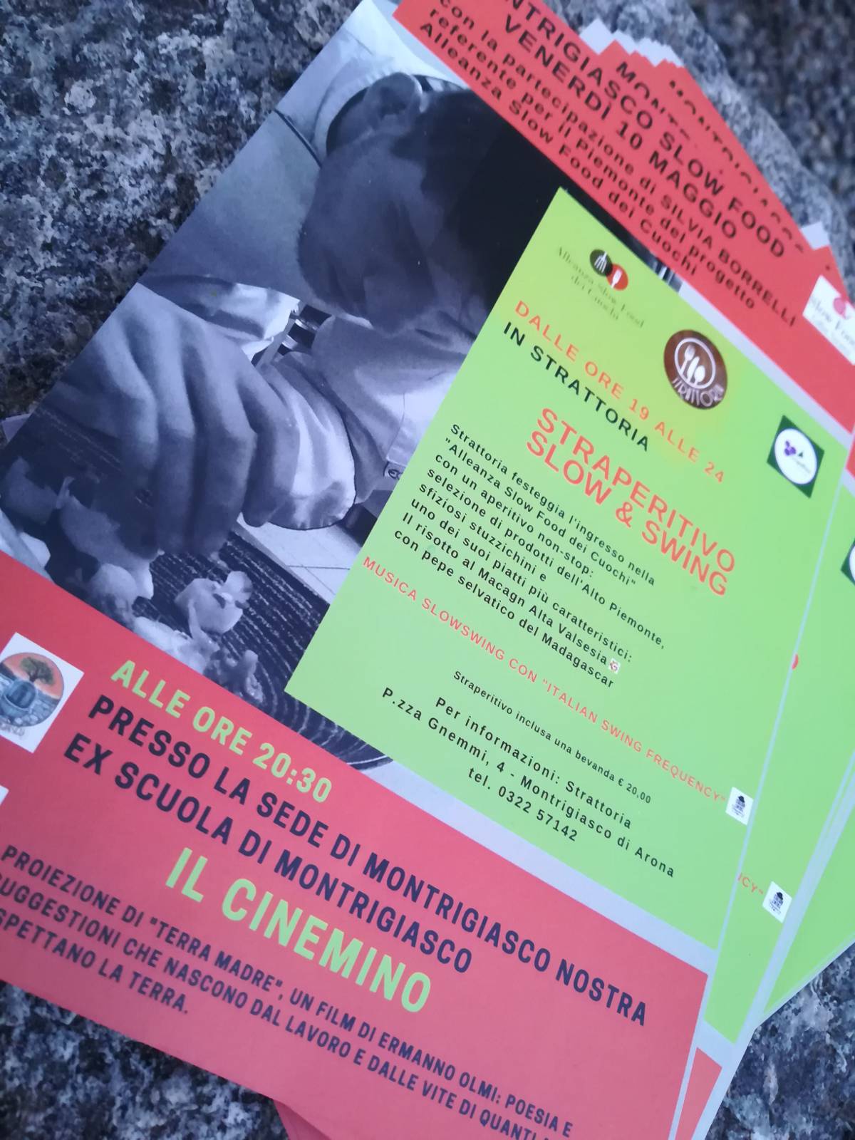 Accanto al locale, alle ore 20.30, presso la sede di Montrigiasco Nostra, c’è stata la proiezione di “Terra Madre”, un film di Ermanno Olmi, poesia e suggestioni che nascono dal lavoro e dalle vite di quanti ancora rispettano la terra, impreziosito anche da un’intervista al fondatore del movimento della chiocciola, Carlin Petrini.