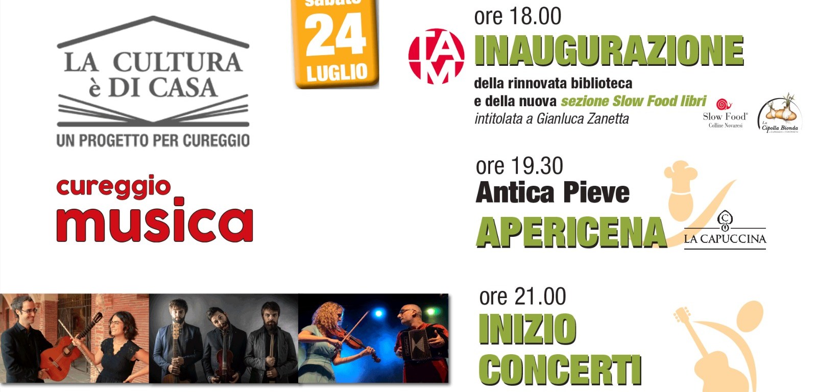 La sezione Slow Food della biblioteca comunale di Cureggio sarà intitolata a Gianluca Zanetta. La cerimonia si terrà sabato 24 luglio, a partire dalle ore 18.00, presso la Casa della Torre, dove avverrà formalmente l’inaugurazione ufficiale della rinnovata biblioteca e della nuova sezione Slow Food Libri. L’intitolazione a Gianluca, amatissimo chef patron dell’Agriturismo La Capuccina e grande promotore delle Colline Novaresi e dell’Alto Piemonte, vuole rendere omaggio allo straordinario carisma di un uomo capace di unire il territorio, grande amico di Slow Food, nonché ideatore e primo produttore del Presidio della Cipolla Bionda di Cureggio e Fontaneto.