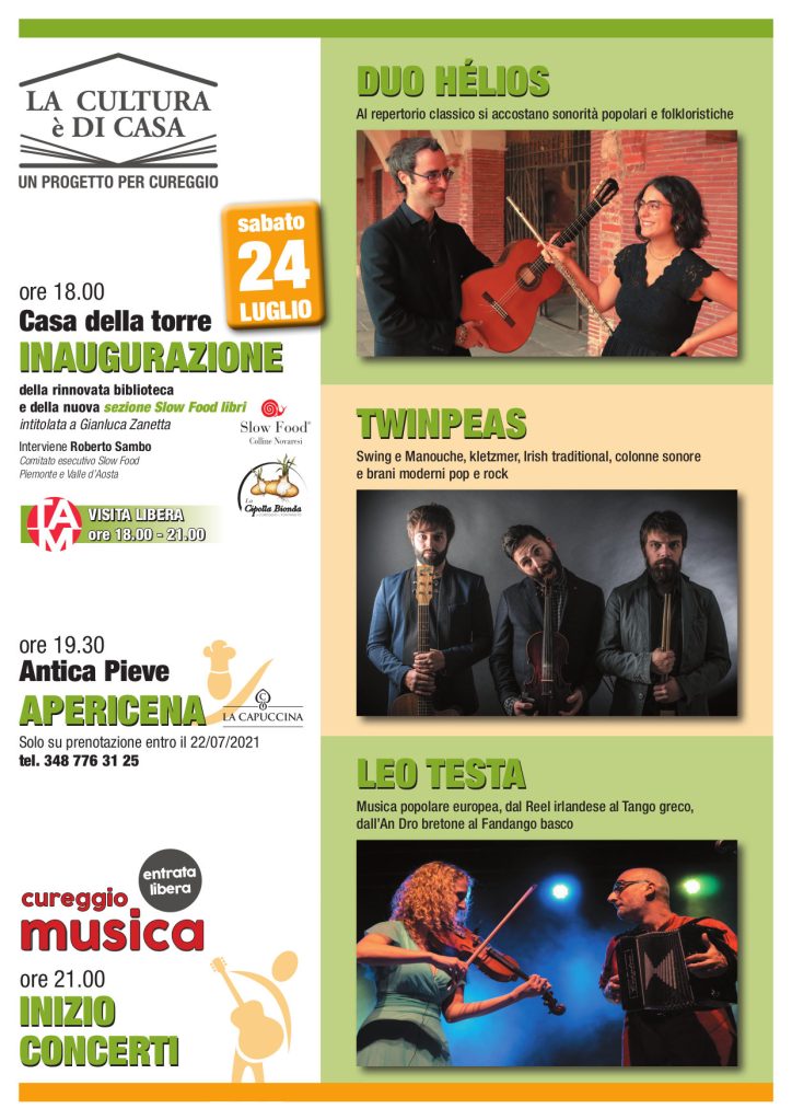 La giornata rientra nel progetto per Cureggio “La Cultura è di Casa”, che raccoglie gruppi e associazioni del paese e del territorio, tra cui anche la Condotta Slow Food delle Colline Novaresi, tutti impegnati per proporre una rassegna di eventi culturali che avranno luogo a Cureggio nel corso dell’estate 2021. Il progetto ha come scopo quello di accogliere a casa nostra la cultura in ogni sua forma, affinché sia accessibile a tutti e diventi un momento di aggregazione e crescita condivisa.