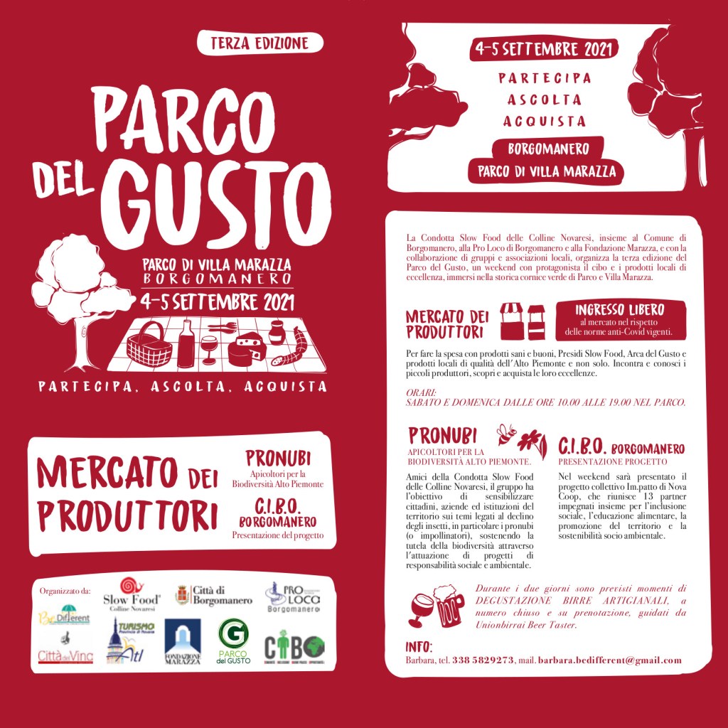 Si rinnova per la terza volta l’ormai consueto appuntamento con il Parco del Gusto a Borgomanero. Il primo weekend del mese di settembre, sabato 4 e domenica 5, il Parco di Villa Marazza ospiterà ancora una volta il mercato dei piccoli produttori dell’Alto Piemonte e non solo. La manifestazione è organizzata dalla Condotta Slow Food delle Colline Novaresi, insieme al Comune di Borgomanero, alla Pro Loco di Borgomanero e alla Fondazione Marazza, con il patrocinio e il sostegno di ATL Novara.
