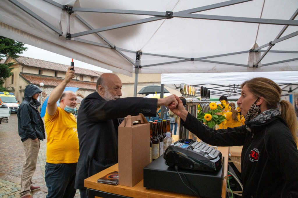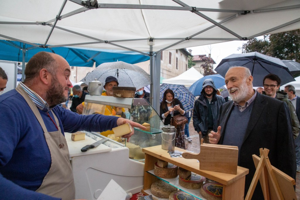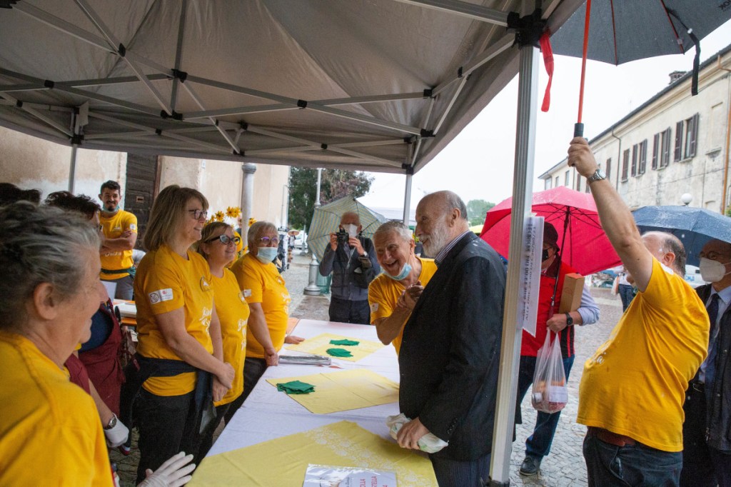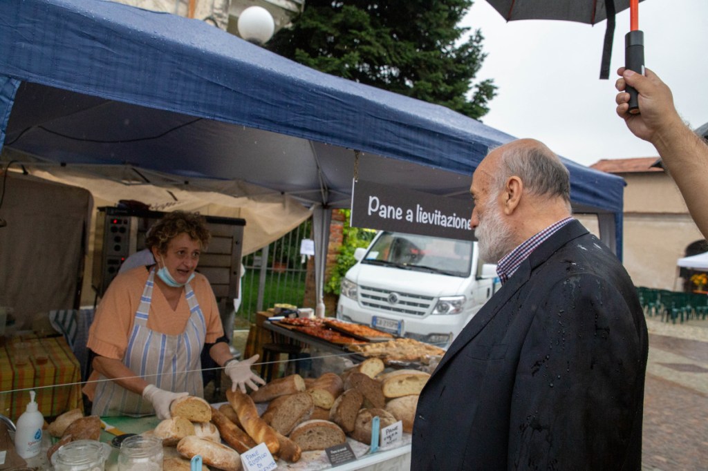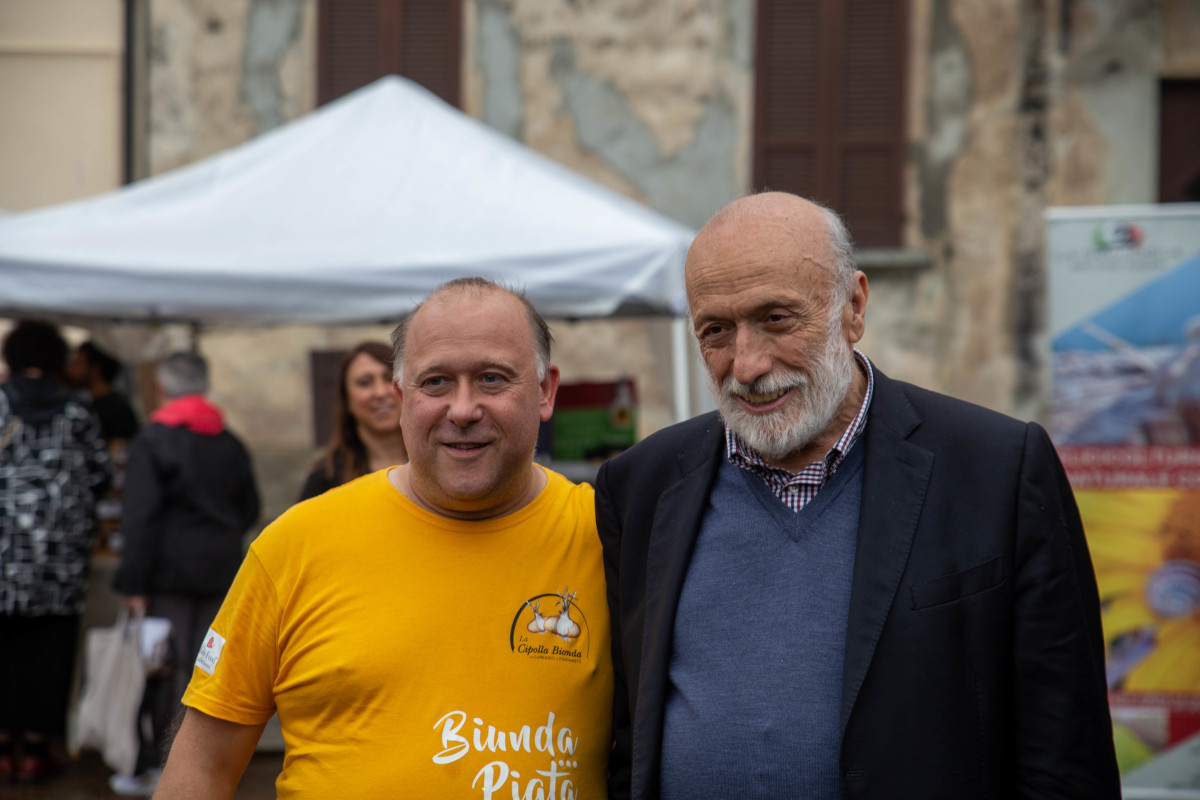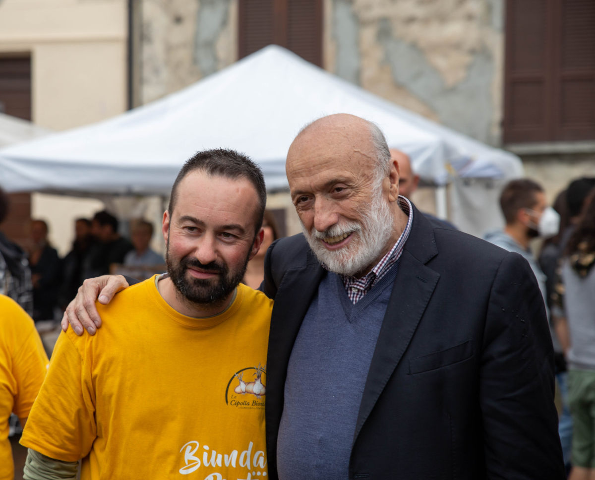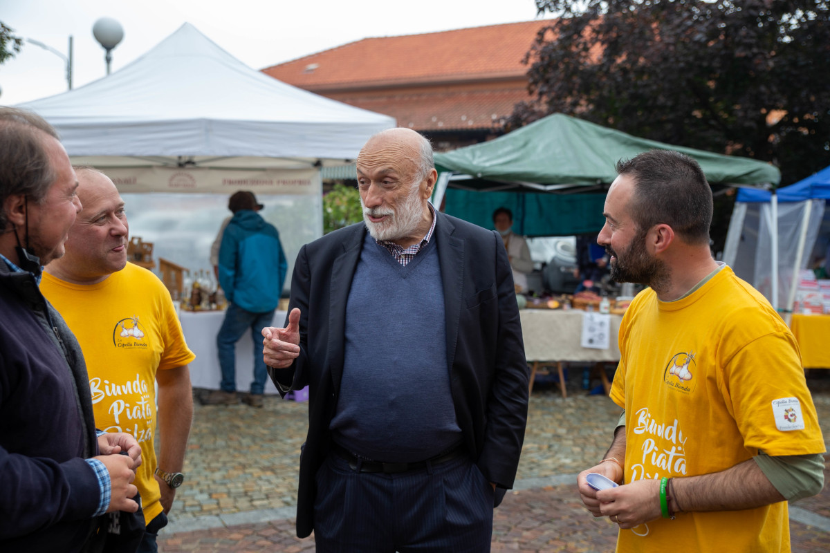 La pioggia, giunta leggera nel primo pomeriggio di domenica sui banchi della Fiera della Cipolla Bionda in Piazza Castello a Fontaneto d’Agogna, non ha saputo smorzare l’entusiasmo e l’attesa di pubblico e organizzatori. L’occasione era troppo importante. Carlin Petrini, storico fondatore e presidente di Slow Food, è arrivato alle 14.30 in fiera per portare il saluto alla cipolla protagonista del fine settimana e ai produttori del ricco mercato contadino che ha animato come ormai da tradizione il piccolo centro novarese sul finire del mese di settembre.