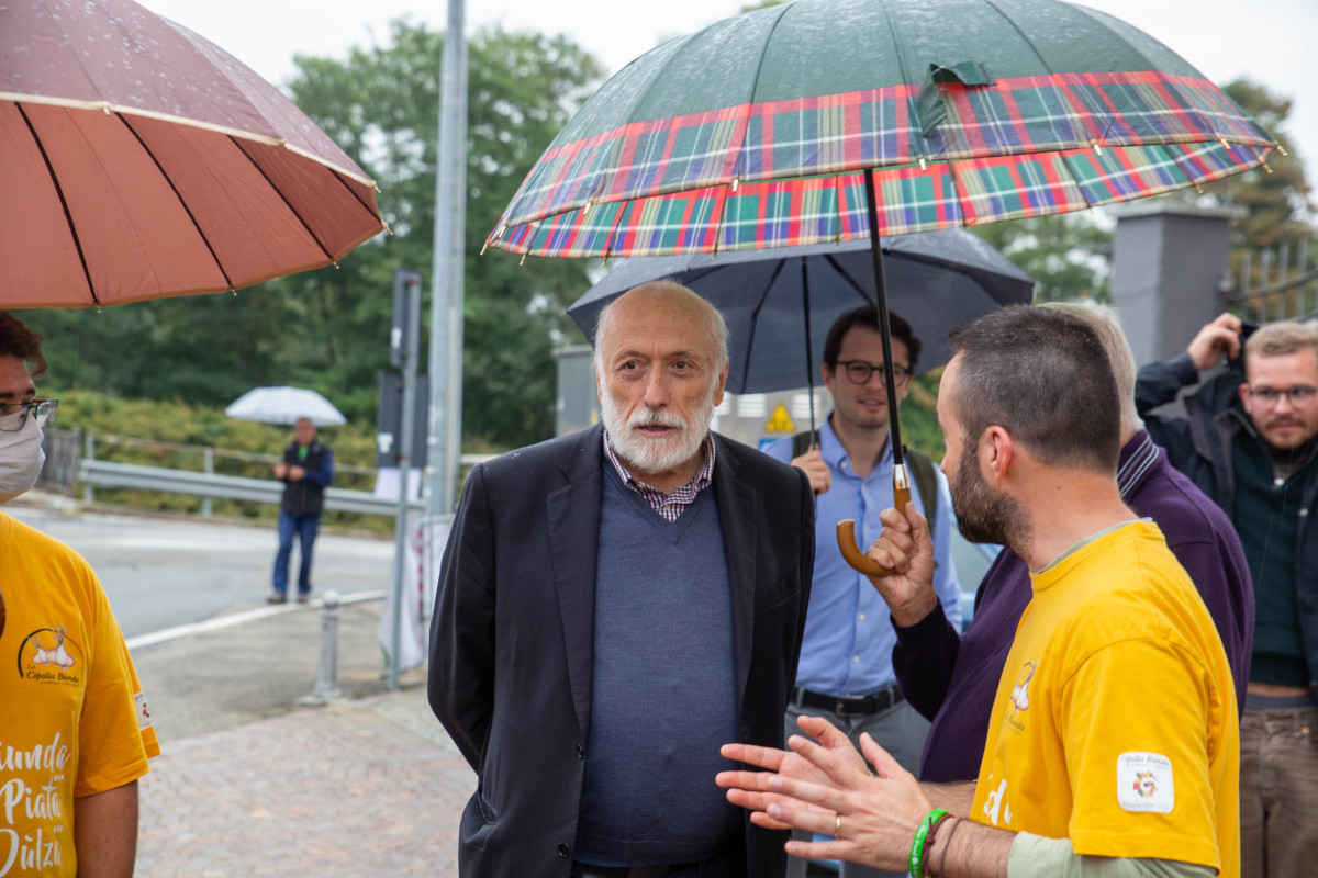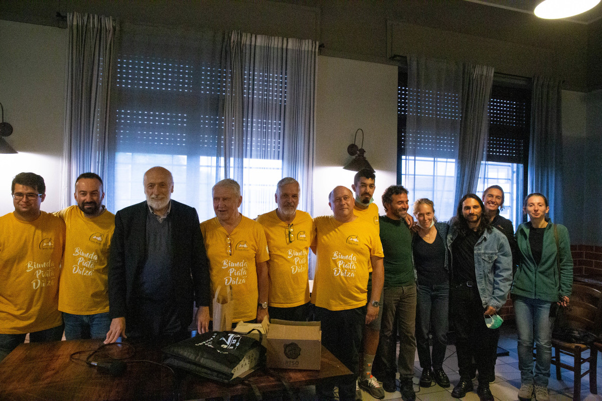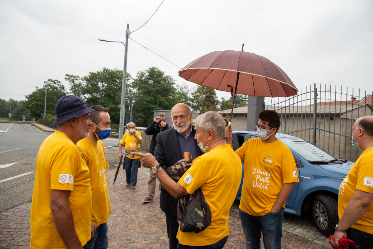 “Questi matti con la maglietta gialla non fanno folclore – ha affermato poi salutando e riferendosi al numeroso gruppo in maglia gialla – hanno fatto un lavoro incredibile sul territorio in questi anni.”