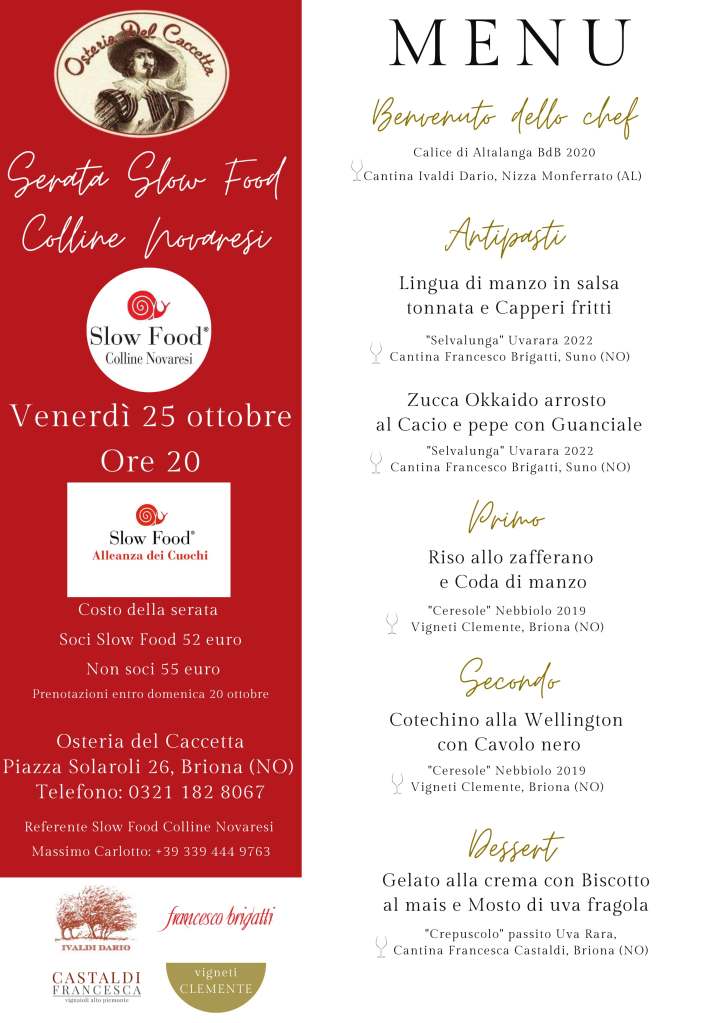 Torna venerdì 25 ottobre la cena dell’Alleanza dei Cuochi di Slow Food presso l’Osteria del Caccetta di Briona, in Piazza Solaroli 26.