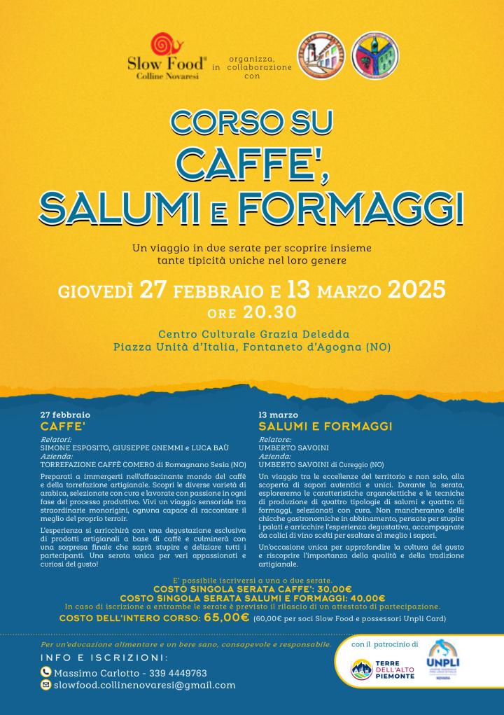 L’affascinante mondo della torrefazione, il variegato universo dei salumi e formaggi. Due serate per saperne di più, dove scoprire i segreti di prodotti di eccellenza, guidati da esperti del settore. Torna l’ormai tradizionale corso primaverile di educazione alimentare e per un bere sano e consapevole organizzato dalla Condotta Slow Food delle Colline Novaresi. Le due serate si svolgeranno presso la sede dell’associazione presso il Centro Culturale Grazia Deledda in Piazza Unità d’Italia a Fontaneto d’Agogna.