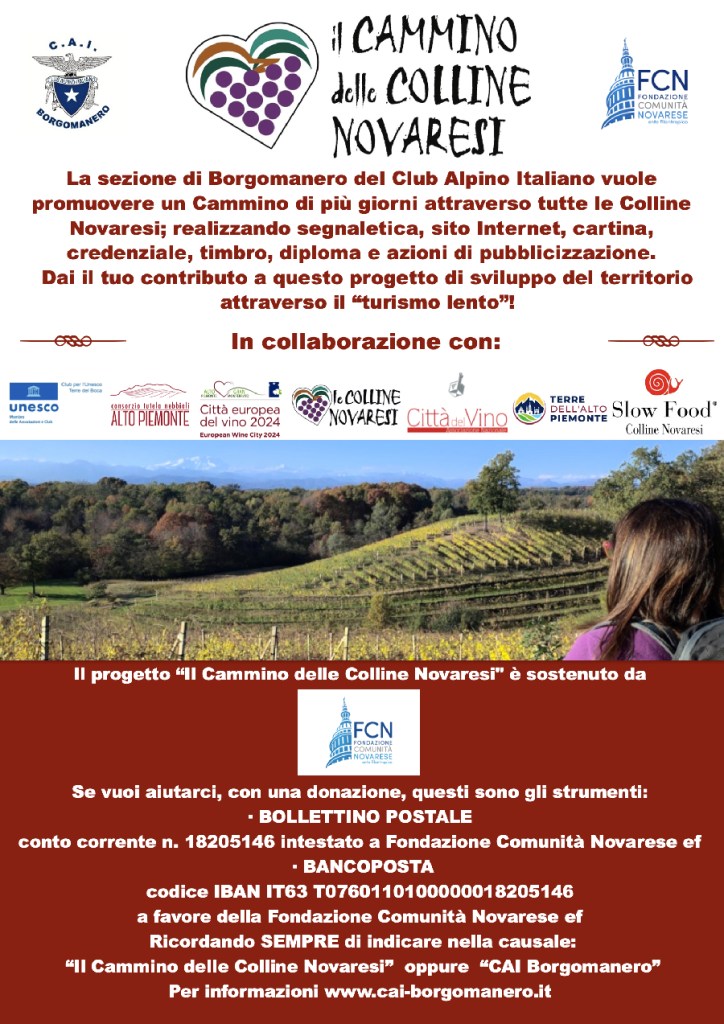 Ricordando SEMPRE di indicare nella causale: “Il Cammino delle Colline Novaresi” oppure “CAI Borgomanero”