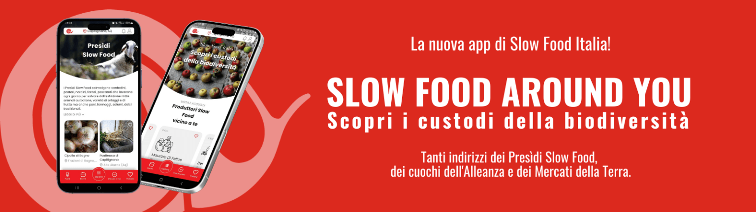 Scarica gratuitamente la app ufficiale di Slow Food Italia e vai a trovare i produttori direttamente in azienda o nel loro punto vendita. Assaggia i piatti dei cuochi che valorizzano i prodotti e le tradizioni gastronomiche acquistando direttamente dai produttori del loro territorio. Visita i Mercati della Terra, luoghi di incontro e apprendimento collettivo dove fare la tua spesa buona, pulita e giusta.