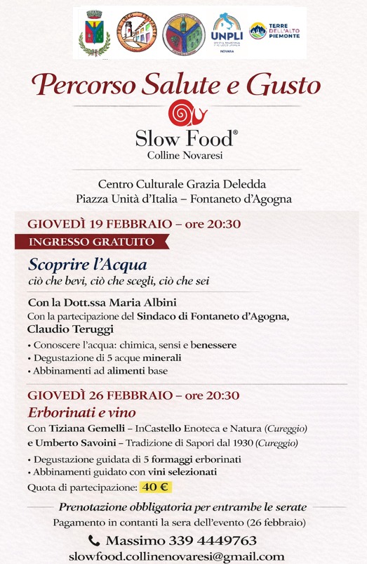 Il Percorso Salute e Gusto, promosso da Slow Food Colline Novaresi, è un cammino di educazione al gusto e alla consapevolezza che si svolge presso il Centro Culturale Grazia Deledda, in Piazza Unità d’Italia a Fontaneto d’Agogna.
