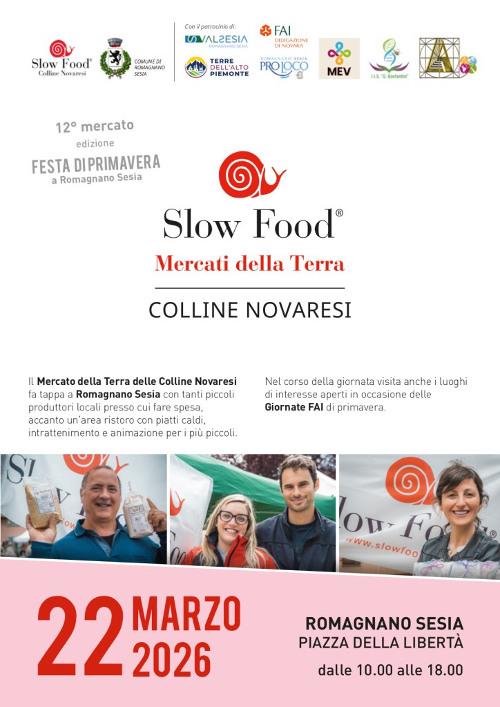 Domenica 22 marzo, in centro paese, ritorna a Romagnano Sesia il mercato di Slow Food: una giornata di festa per fare la spesa con eccellenze del territorio e prodotti a km giusto, in occasione anche delle giornate di primavera del FAI.