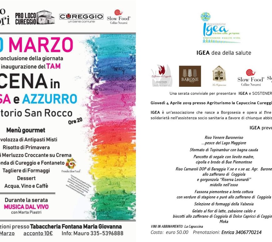 Sabato 30 marzo a Cureggio, nel contesto della rassegna Marzo a Colori, la Pro Loco di Cureggio, con il patrocinio del Comune e della nostra Condotta Slow Food, a conclusione della giornata di inaugurazione del TAM centro didattico e multimediale sul medioevo novarese, organizza una cena in rosa e azzurro con menu gourmet, presso l’oratorio San Rocco, a partire dalle ore 20.00. Sempre a Cureggio, … Continua a leggere Cureggio, due serate di promozione del territorio e solidarietà